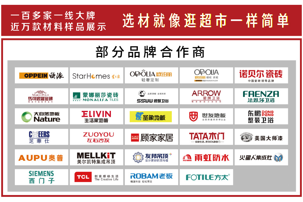 風(fēng)范裝飾(歐派鉑尼思)擁有近8000㎡的營業(yè)展示廳,內(nèi)設(shè)樣板間及情景展示間16個(gè),5000㎡大型材料展示館分區(qū)域及工藝展示區(qū)域,集中展示風(fēng)范裝飾(歐派鉑尼思)整合的一線大牌主材輔材,家具家電,燈飾窗簾,以及透明化展示施工細(xì)節(jié)。讓消費(fèi)者真正實(shí)現(xiàn)所感即所要,所見即所得!